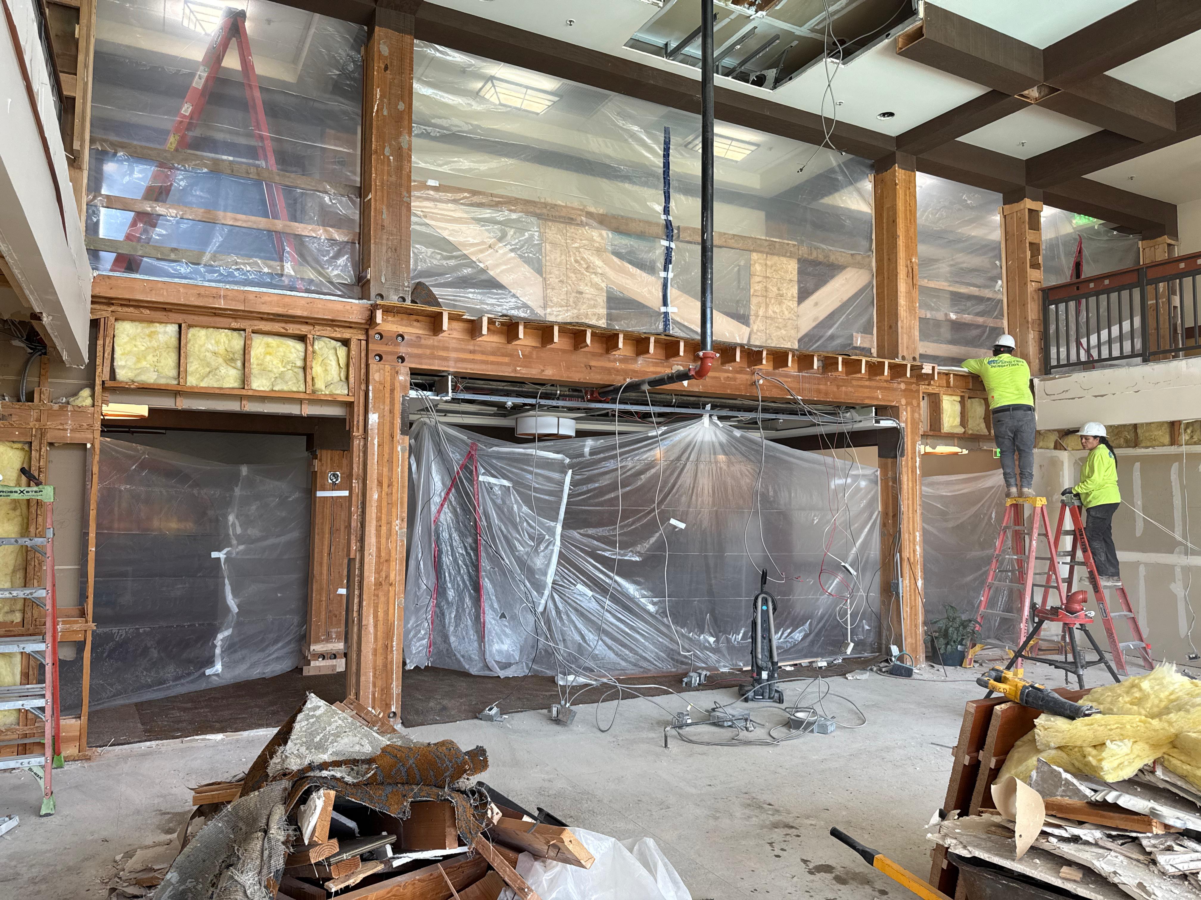 Implementing dust control measures that protect other parts of the building and the property from dust and pollution during demolition